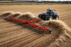 The farmer attached a harrow to the tractor.