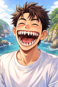 投稿日: hilarious 発音 hiléəriəs ハレリアス https://www.en-tango.com/wp-content/uploads/2019/08/hilarious.mp3 意味 とても面白い イメージ 歯ねリアス海岸みたいでとても面白い 彼の歯ね、ギザギザのリアス海岸みたいでとても面白いというイメージ。 例文 It’s hilarious how his teeth look like a jagged ria coast. 彼の歯がギザギザのリアス海岸みたいでとても面白い。